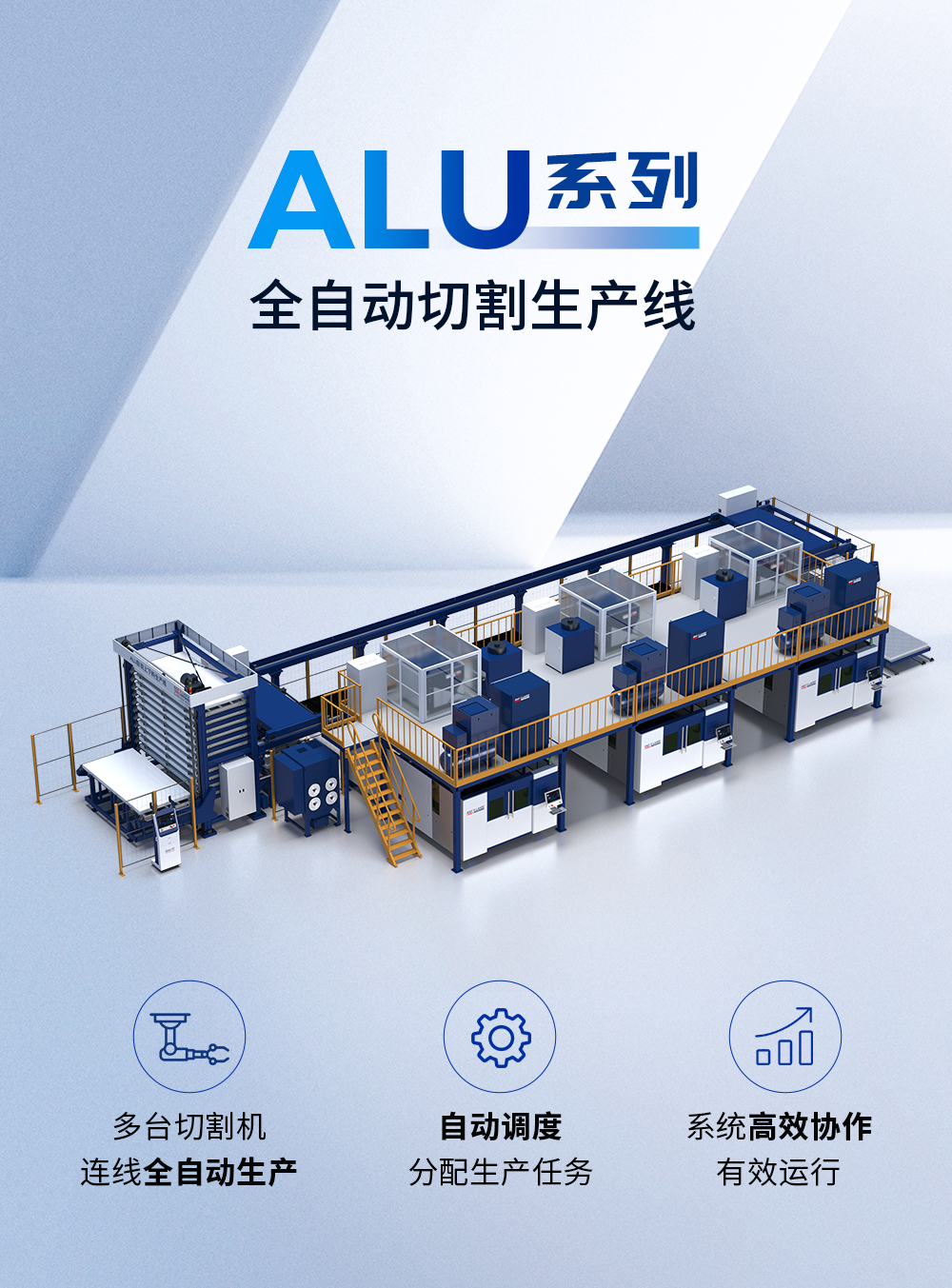 ALU整條生產(chǎn)線所包含的激光切割機(jī)、上下料控制系統(tǒng)、切割機(jī)數(shù)控系統(tǒng)及FMS智能調(diào)度控制系統(tǒng),均為大族激光自主研發(fā)設(shè)計制造,高度融合,節(jié)拍更快,有效保證生產(chǎn)的連續(xù)性、高效率、智能化和穩(wěn)定性,可有力推動企業(yè)轉(zhuǎn)型升級、提升產(chǎn)業(yè)競爭力,賦能制造業(yè)向高端化、智能化方向發(fā)展。
